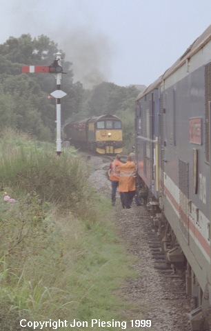 The 1710 from Bury passing 73133+73129 on the 1705 from Rawtenstall